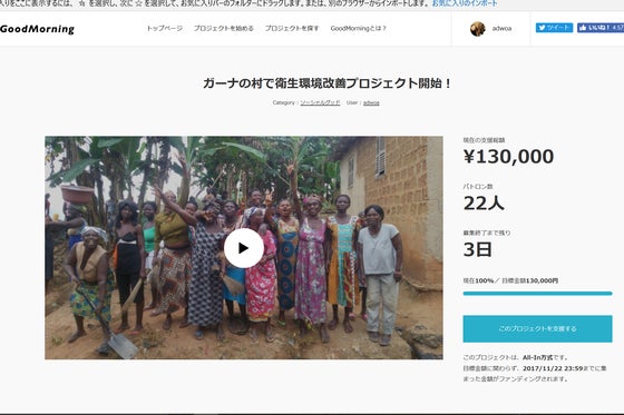 こんばんは、プロジェクトオーナーの若松南菜子です。 本日プロジェクトの目標金額を達成いたしましたのでご報告させていただきます。 22人のパトロンの方々のご協力で、目標であった130000円を集めることができました。 このプロジェクトを支援していただいた方々、拡散していただいたたくさんの方々、 本当にありがとうございました。 ガーナでのより効果的な活動に使わせていただきます。 次はガーナの現地NGOや衛生プロジェクトリーダーと資金の使い道を再度確認し、 プロジェクトユニフォーム作成や清掃道具購入に向けて準備開始です! 重ねてにはなりますが、ご協力いただいたみなさま、 本当にありがとうございました。