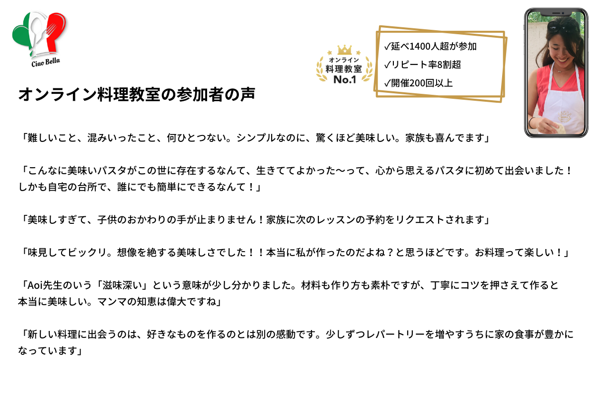 オンライン料理教室「イタリアのマンマ直伝パスタクラス」では、述べ生徒数1400人にのぼり、