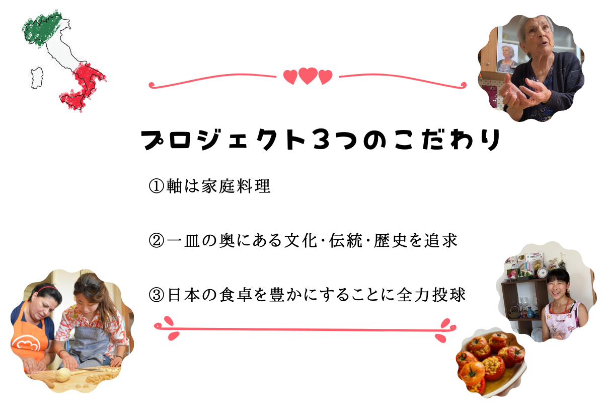 「イタリア全20州を訪ね、家庭料理を学びたい」