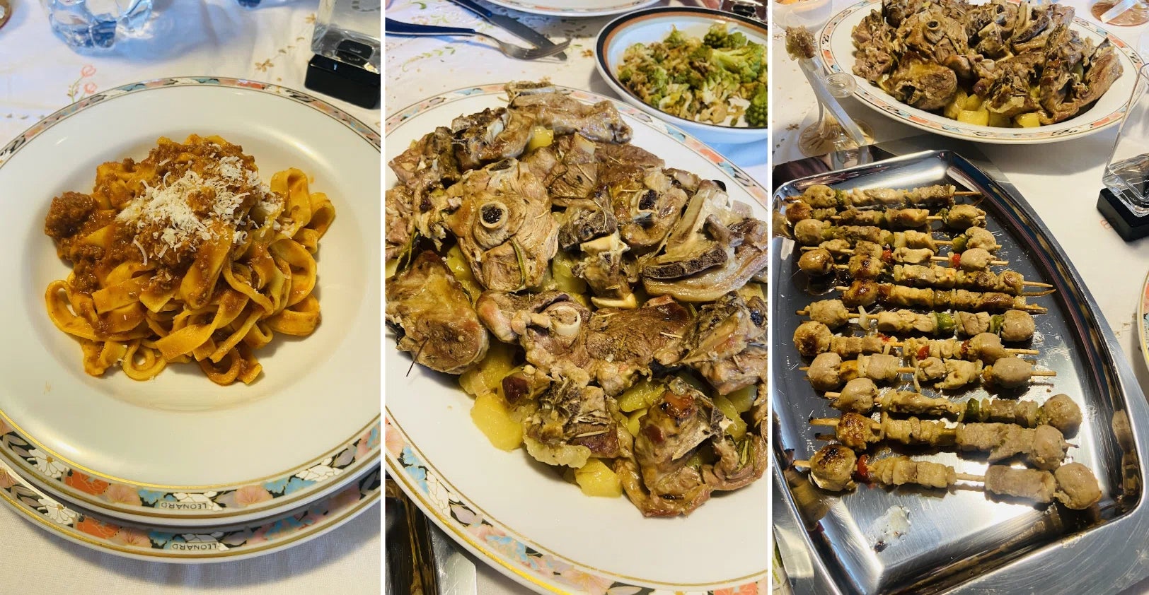 イースター本番は、プリモは手打ちのタリアテッレ・アル・ラグー、セコンドはレッスンでも作ったラム肉とジャガイモのオーブン焼き、串焼きと肉三昧。