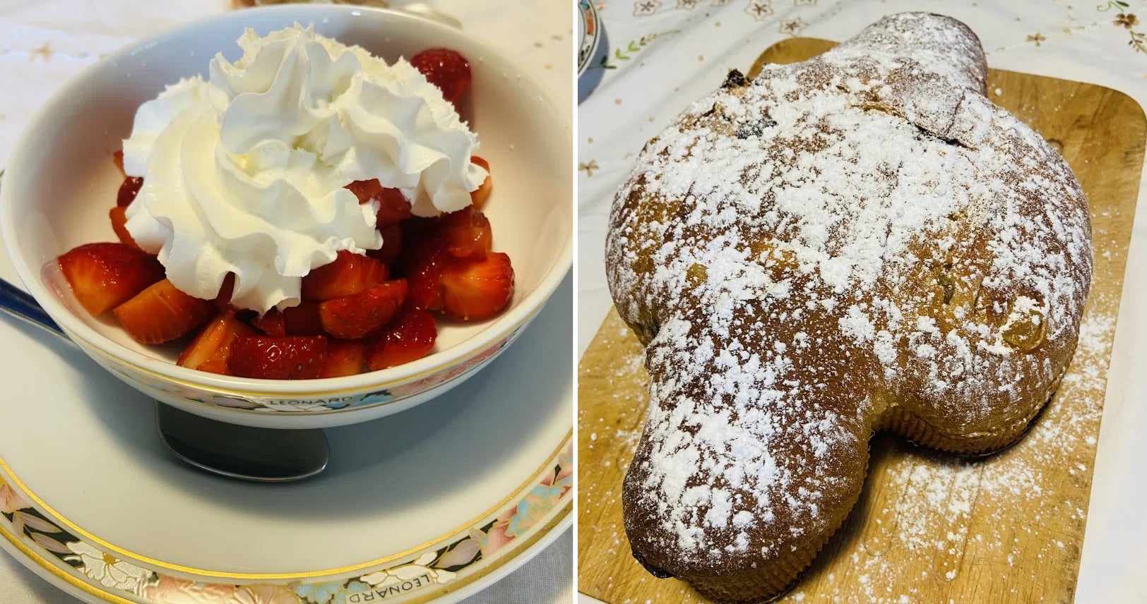 ドルチェはイチゴホイップ(なぜかイタリアではイチゴには必ず生クリームを載せる)や伝統菓子コロンバ。