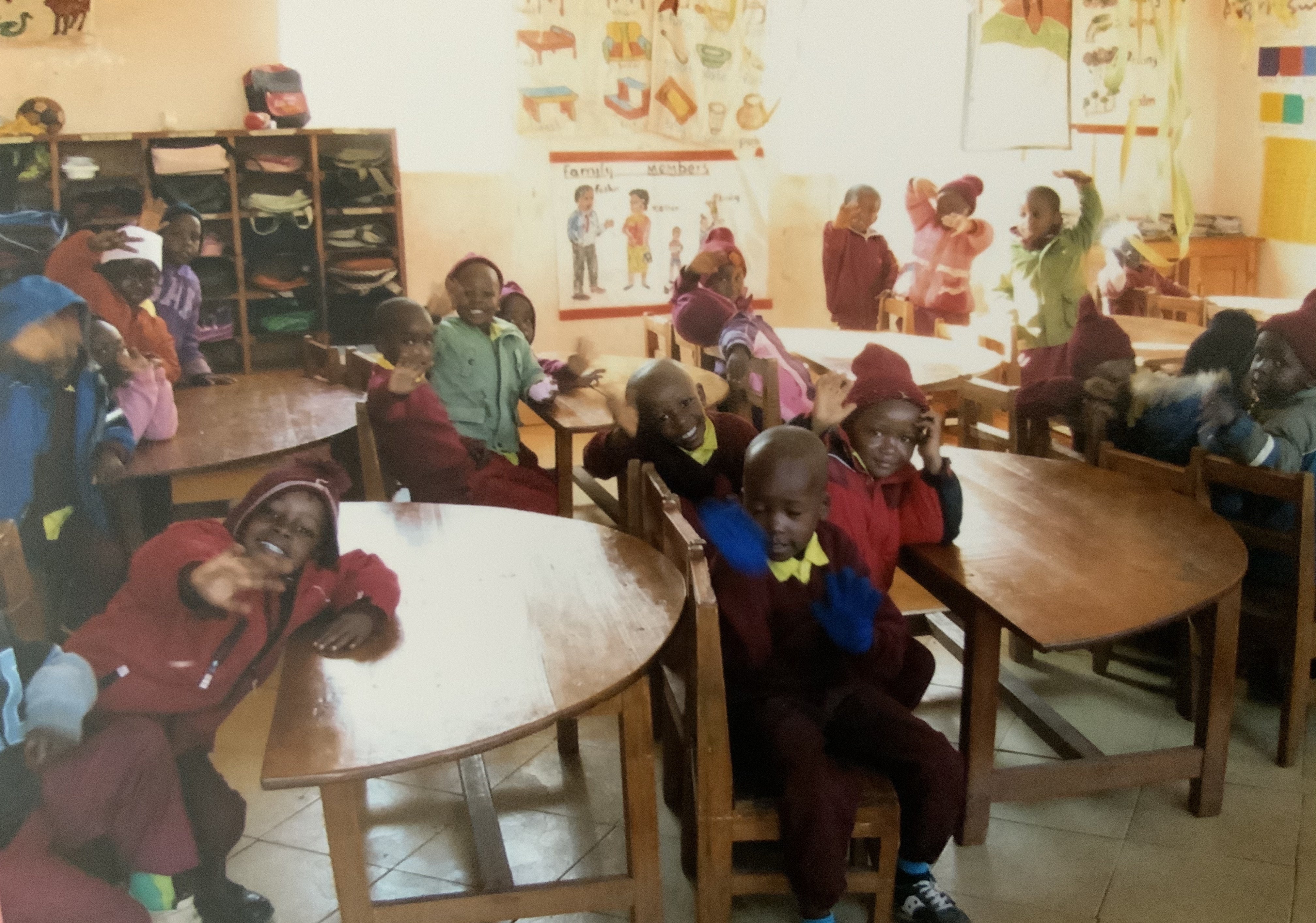 学校建設予定地は何もない野原。当時は首都ナイロビから道が悪く車で5、6時間かかり(現在では綺麗に舗装されたおかげで3時間)、水道も電気もないロイトキトクという田舎町です。何もないけれど、学びへの意欲あふれる子どもたちはたくさんいました。2009年1月開校時、生徒50名募集のところへ70名押し寄せ、教室が足りずに野外でも授業を行うことに。友人知人からの支援金で、2014年には小学1年から8年生までの校舎が完成。さらに、乳幼児専門の教科書を出版している、株式会社萌文書林の資金を受けて幼稚園を建設。幼稚園の机と椅子は、大学のスタディツアーの主催者、元・目白大学教授、西方毅氏から寄贈されました。