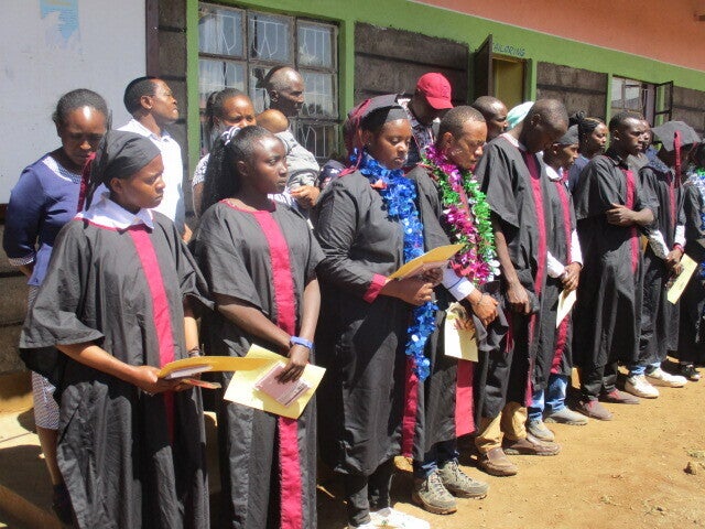 そんな若者たちがとりあえず都会へ行けば何か仕事にありつけるだろう、と首都ナイロビへ上京したところで、大卒でさえも就職難なケニア。定職に就けず単純労働でその日をしのいだり、田舎へ戻り家事手伝いという名の家族の厄介者になる、など貧困の連鎖から抜け出すことができない元凶となっています。小学校卒業式 記念撮影する8年生