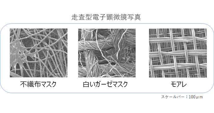 100回の日常会話60分の使用実験において、外表面に飛沫が及ぶことはなかったモアレ(性能については後述します)
