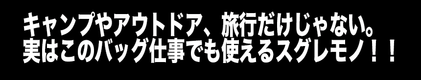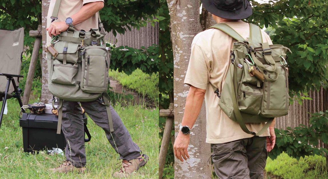 キャンプ・アウトドアシーンだけでなく、ビジネスシーンにもマッチするデザインだから、使い方は無限大!もう仕事と遊びのバッグを変える必要がありません!!
