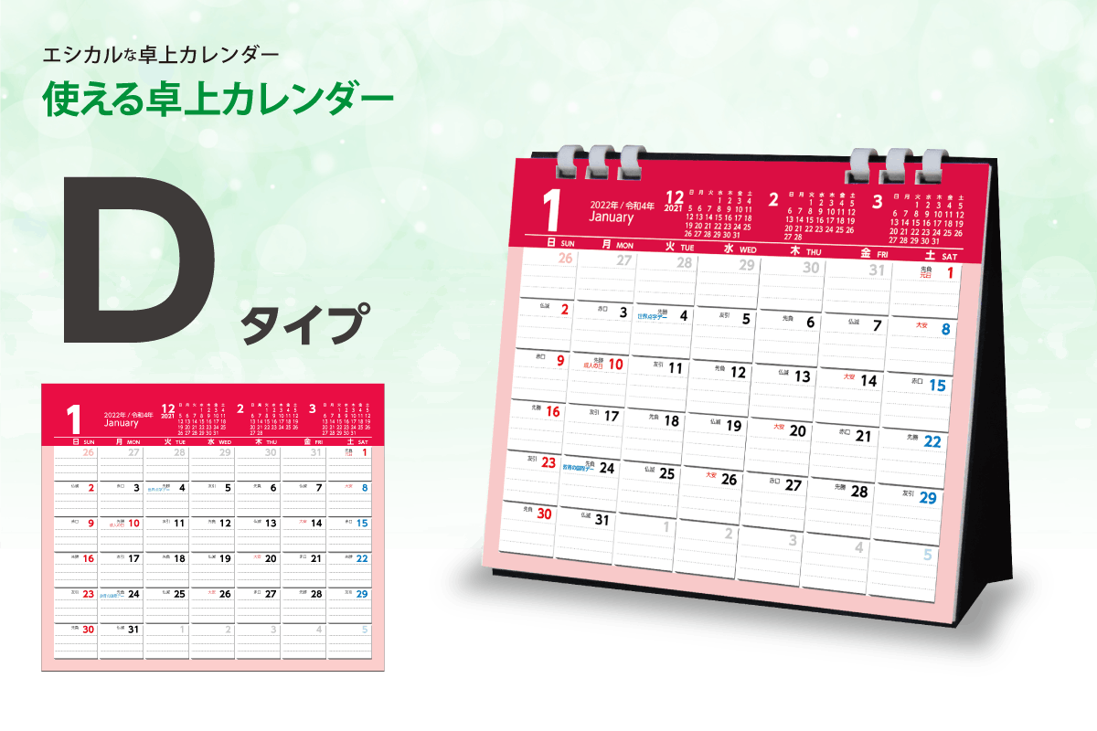 ・1,000円(税込・送料込)ご支援 エシカルな卓上カレンダー「使える卓上カレンダー」