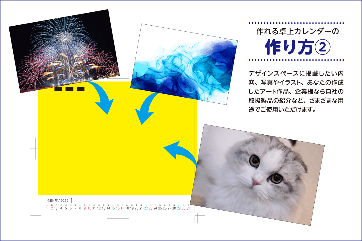 それならば小ロットで1冊から作成できる「作れる卓上カレンダー」に掲載し配布することでその方々の取り組みや作品のPRの場として使用していたくことで、お役に立てるのではと考えております。