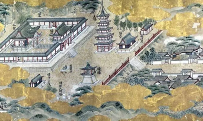 古図によると本堂・回廊・楼門・五重塔・鐘楼・仁王門・御供屋などが並ぶ堂々たる大伽藍であり、時に南北朝時代には足利尊氏の寄附などにより、この地域では比類の無い大寺院でした。