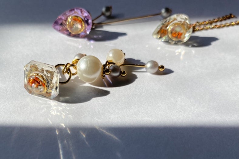 耳飾り、髪飾り、バングル、ネックレス、ネクタイブローチなどユニセックスなものも取り扱って作品作りをしております。