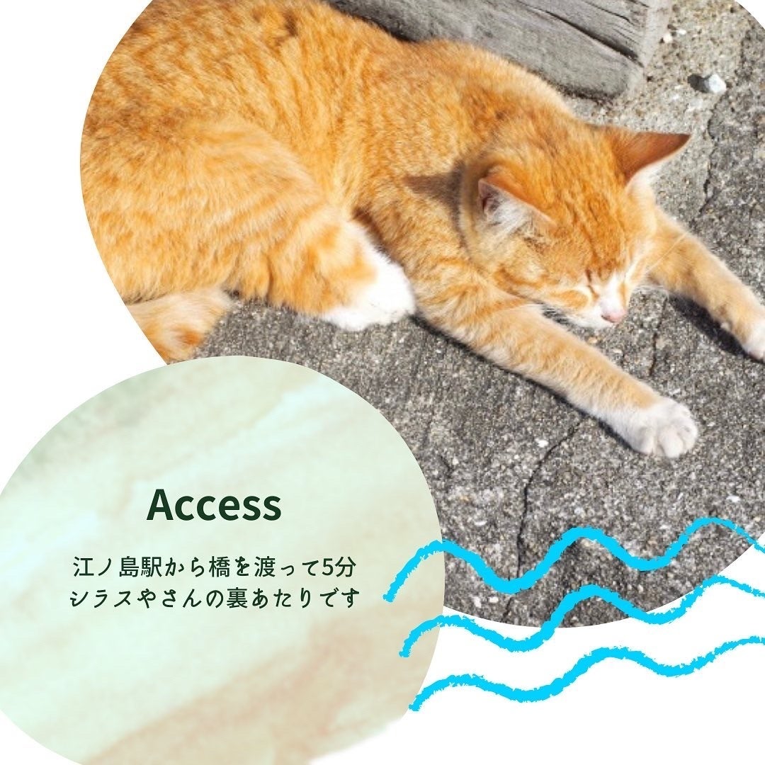 【アクセス】電車でお越しの際は、弁天橋を渡って徒歩5分程度。シラス屋さん(とびっちょさん)の裏の小道から階段をあがった所にあります。お車でお越しの際は、島内の1日最大料金2000円の観光駐車場をご利用いただくこととなります。