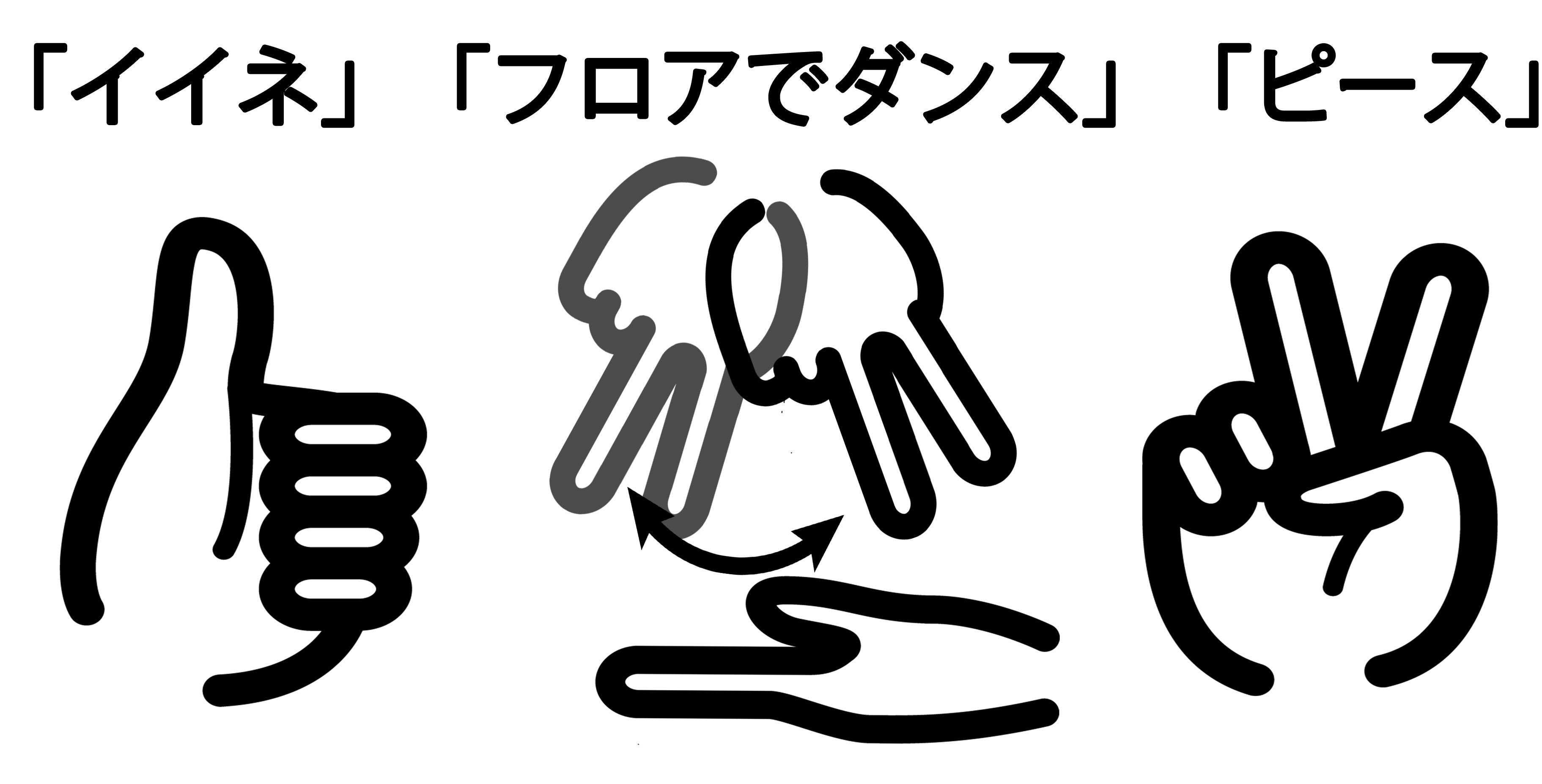 それぞれ国際手話で、「楽しい」「踊る」「平和」を表すそうです。