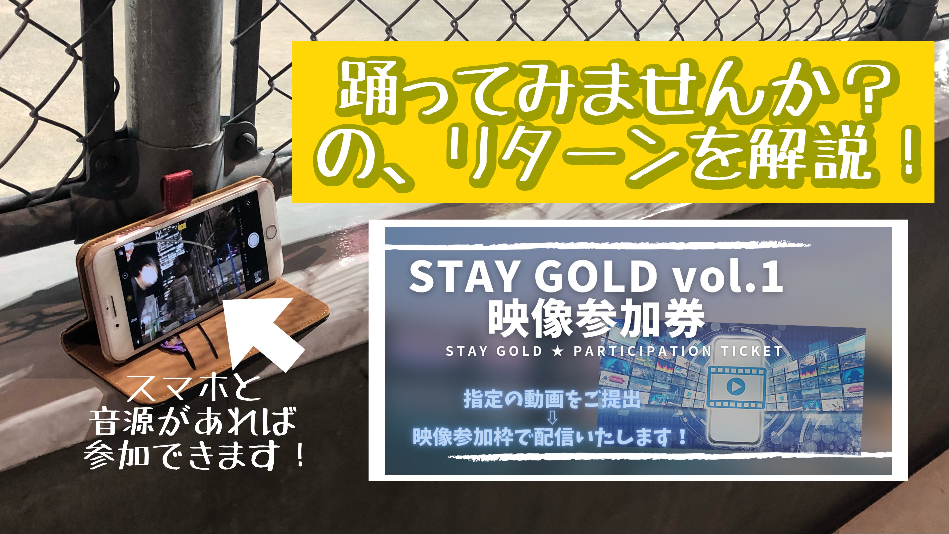 今回は、リターンの中から「STAY GOLD vol.1 映像参加券」について、具体的にどうやって参加したら良いの? 内容がちょっとよくわからない? について解説いたします!