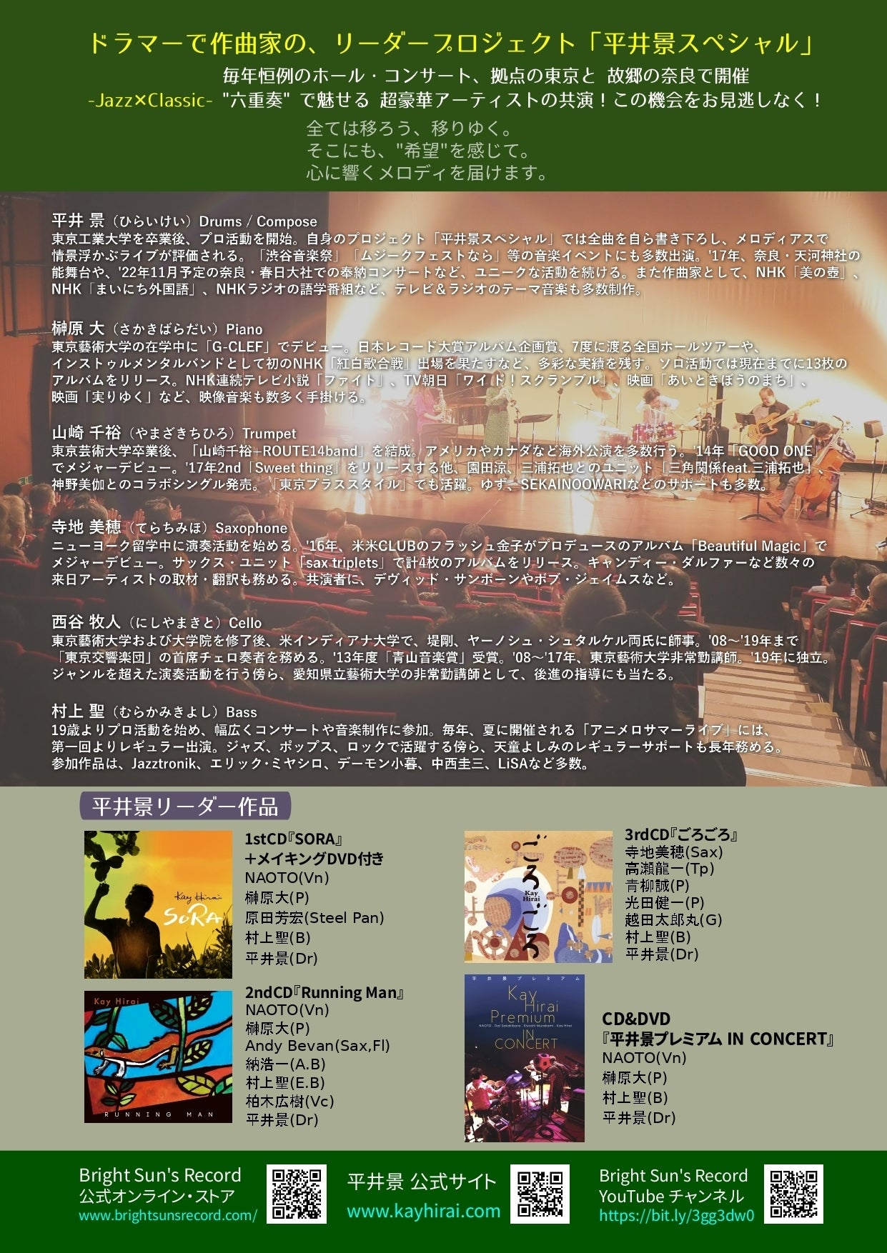 年末は、この作品の作曲とサウンドプロデュースを務めた、ドラマーの平井景さんのコンサートが、東京と奈良で開催されます!