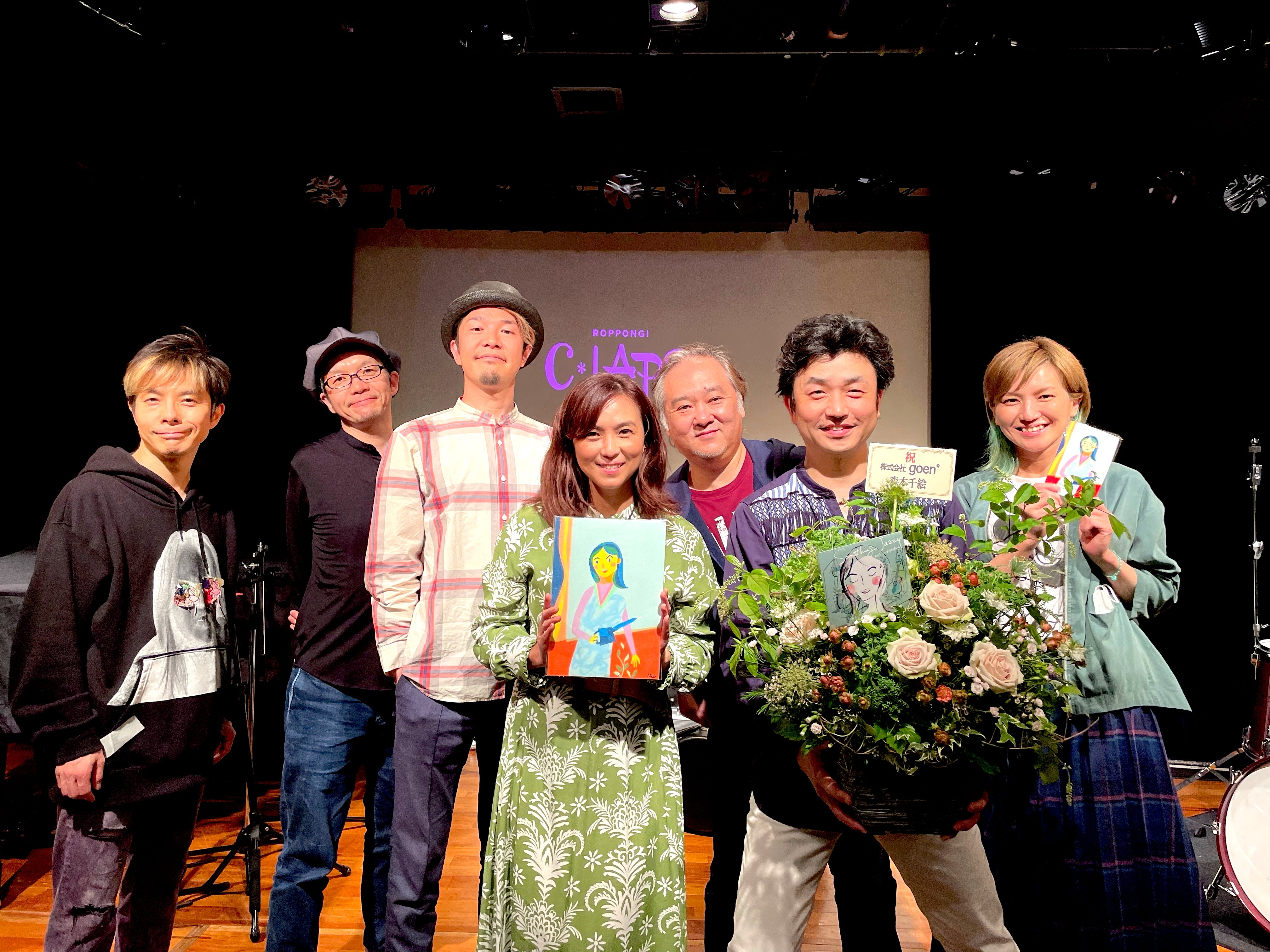 「Something Jazzy~メロディ・イン・ザ・リビングルーム」CD完成記念、有難うございました!5/21(土)、東京・六本木クラップスで開催された、「Something Jazzy~メロディ・イン・ザ・リビングルーム」CD完成記念コンサート。大盛況で終了しました!お越し頂きました皆さま、本当に有難うございます。皆さまからご支援頂いたクラウドファンディングから始まり、CD制作からライブまで。私にとって、一からスタートしたこの一連のプロジェクト、リハからもう感激しっぱなしでした。レコーディングしたものを、一気に生演奏で聴くというのは、不思議な感じです。会場の入り口には、今回のジャケットのアートワークを手掛けた森本千絵さんの砂絵の原画を飾りました。イラストも色彩も可愛いんです‼そして千絵さんからのお祝いのお花も。飾らせて頂きました。リハも順調に進み、いよいよ開場時間。まずは私のDJからスタートします。ここ1年くらいは「コロナ退散!」という気持ちもあってか、開放感のある、元気なファンキーな選曲が多かったのですが、今回のテーマは”リビングルーム”という事で、爽やかなソフトサンバやクロスオーバー系サウンドを入れた選曲にしました。DJをしてると、どうしても下を向いてしまうので、上を向いてる写真を選んでみました(笑)。気が付いたら、満席状態。今回のクラファンで、サポートして下さった方々でいっぱい。皆さんの笑顔が見えるたび、嬉しくてたまりません。そしていよいよライブがスタート!「Something Jazzy~メロディ・イン・ザ・リビングルーム 」レコーディング参加メンバー、全員集合です!伊藤大輔 Voice、山崎千裕 Trumpet、越田太郎丸 Guitar、扇谷研人 Piano,Keyboard村上聖 Bass、平井景 Drums、Sound Produceオープニングはアルバム同様、「ラ・タティーバソング」。歌詞付き(作詞=私)ワールドミュージック的印象のこの曲はいっきに会場を熱くします。 いい演奏はもちろん、小さなハプニング、そこから広がる世界観。その度に笑みがこぼれます。これも生演奏の醍醐味。 アルバムの中でも異彩を放つ、情緒感溢れる「Drops」。ライブでも、その世界観に引き込まれました。この曲は、”雨の日に窓につく雫を見ながら、思いを馳せる”。そんなイメージです。エンディングで語るポエムは、レコーディングの時、目の前で繰り広げられる録音演奏をみて、突然、私の頭に浮んできた詩。このライブでも伊藤大輔さんが、優しくポエムリードをしてくれました。私もステージで、レコーディングの事を語る。。。本編のラストは、アルバムの最後に収録されている、バラード曲の「モンステラ」。録音当時の写真をプロジェクターで流しながら、生演奏。色々と思い出してうるっとしてしまいました。構想から1年。やっとできた。。アンコールは、再び「ラ・タティーバソング」を。全員コーラス。私もおもわずコーラスで参加。練習してたなんて、、本当は嘘です。気持ちがのってしまったんです。皆で歌うと楽しい曲。一体感が生まれました!アルバムの作曲とサウンドプロデュースを手掛けた平井景さんは、このライブでも音楽監督をして頂きました。いい楽曲たちと素晴らしい演奏に包まれ、私は大、大、大満足。幸せのピークかもしれません。。そして、会場に足を運んで下さった、皆さんに本当に感謝の気持ちでいっぱいです。終演後は、会場の皆さんにポストカードに直筆のメッセージと、クッキーをお渡ししながら、ご挨拶しました。「良かったよ!」「このライブでツアーしてください」「次のアルバムは??」と嬉しい言葉を頂き、また私は調子に乗りそうです(笑)。本当に有難うございます。ライブの返礼品でご来場出来なかった方には、編集したものをお送りしますね。(※ちょっとお時間ください)またこのCDは、7/22全国販売します。その前にブライトサンズレコードのオンラインショップや平井景さんのライブ会場でも販売します。是非、ご友人などにお勧めください♪更に、まだレコーディング・レポートは終わってません。(あちゃー-)引き続き、頑張ります^^■5/21(土) 「Something Jazzy~メロディ・イン・ザ・リビングルーム」CD完成記念ライブ会場:六本木クラップス【セットリスト】1stラ・タティーバソングDrops夕暮れ時にて2nd美の壷「現代のうつわ」テーマSay YouChangingモンステラEncoreラ・タティーバソング