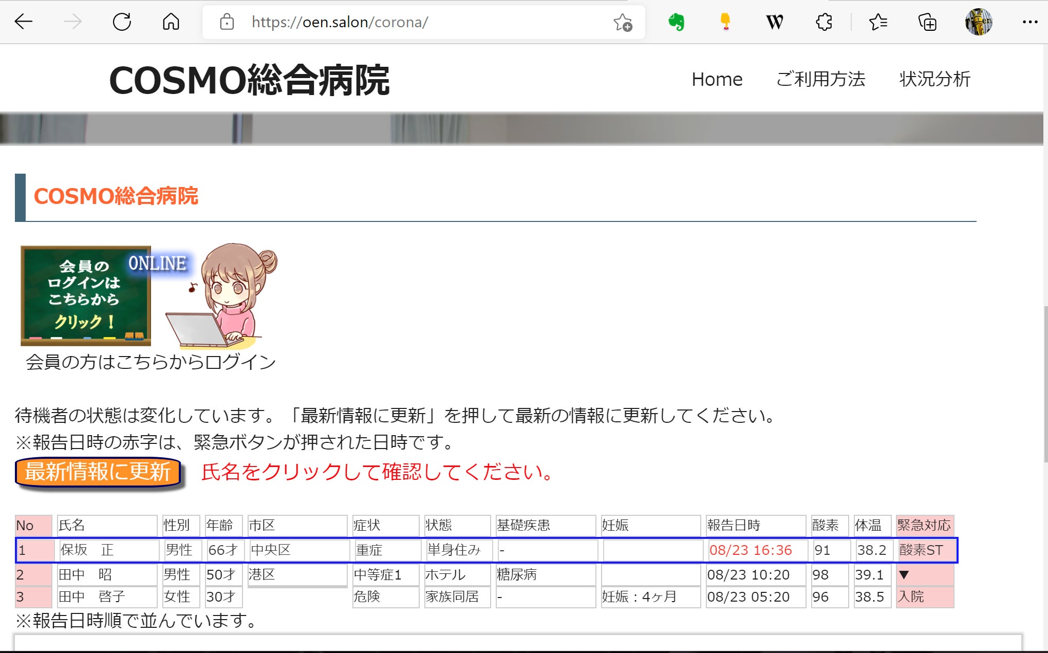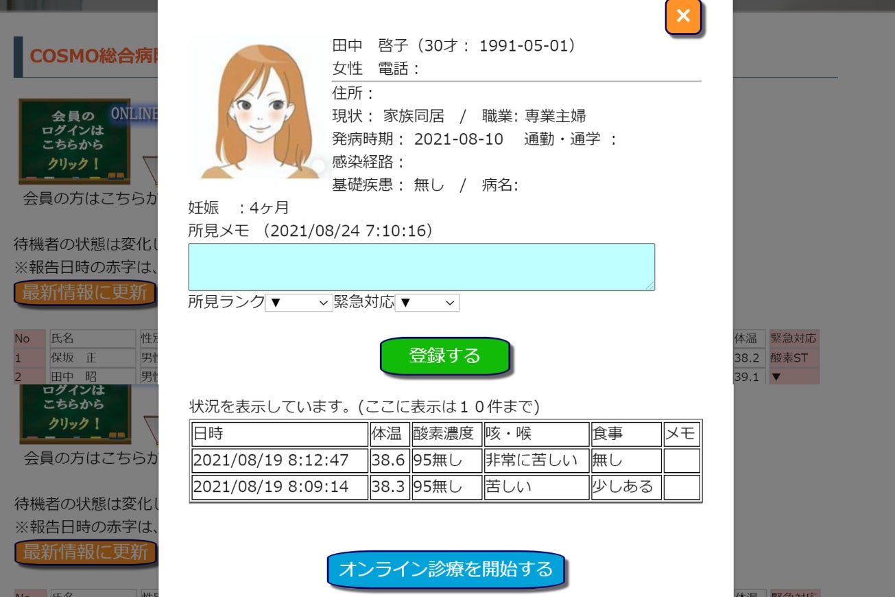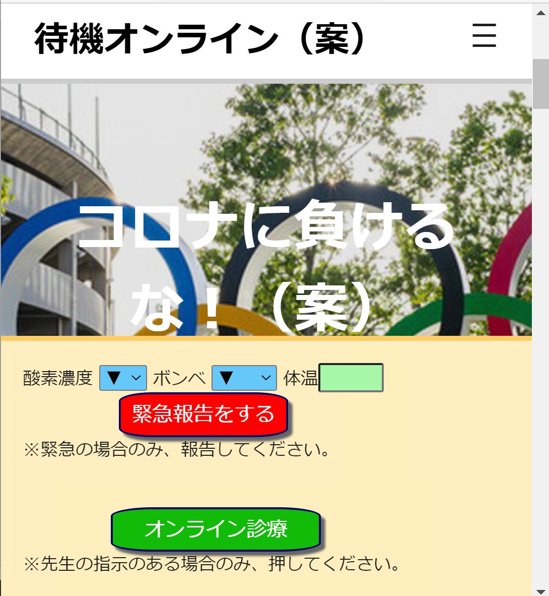 益々増大するコロナ感染者の自宅待機者を、一人でも多く助けたいと思っている医療関係機関、病院、クリニックなど、ITを即活用して効率的な医療を行い、一人でも多く助けて欲しいと思います。