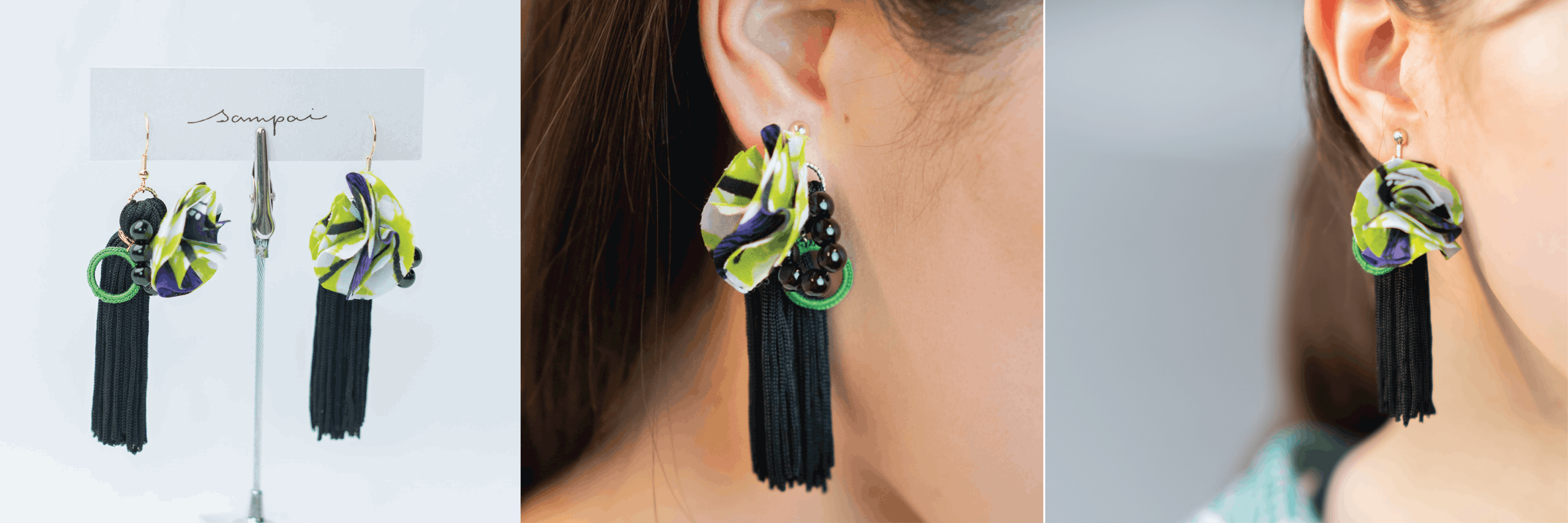 アクセサリーブランドsampaiで代表を務める宮武愛海です。sampaiでは、伝統産業や服飾産業の製作過程で出る産業廃棄物を再利用しアクセサリーを製作しています。