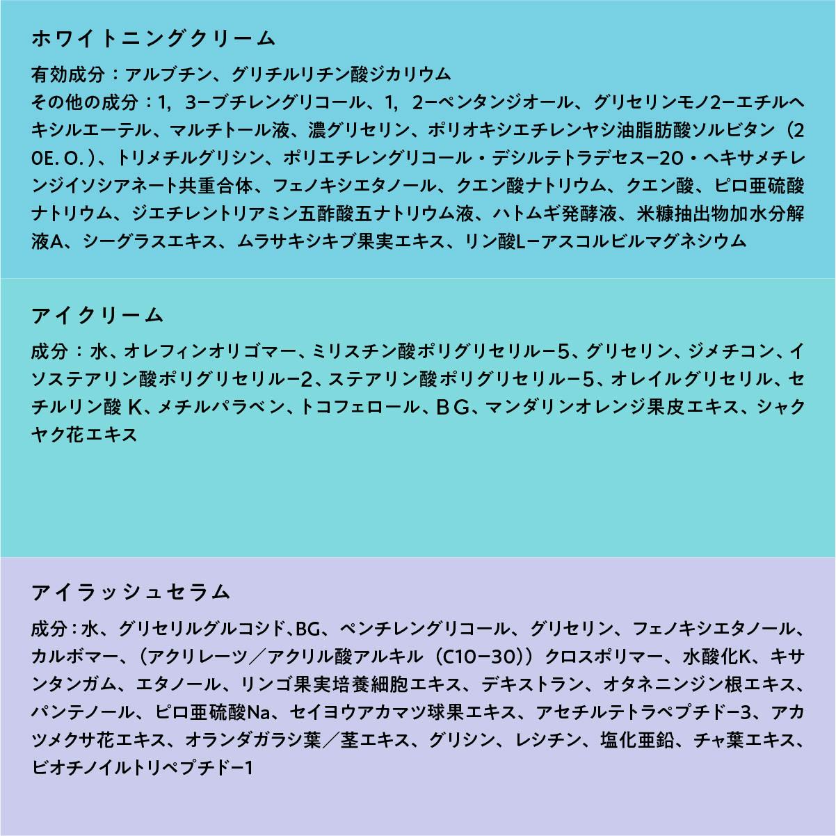 肌悩みの種類:目尻シワ改善・シワ改善・まつげ育成・シミ予防・ニキビ跡対策・毛穴対策・炎症鎮静・美白・デリケートゾーンケア