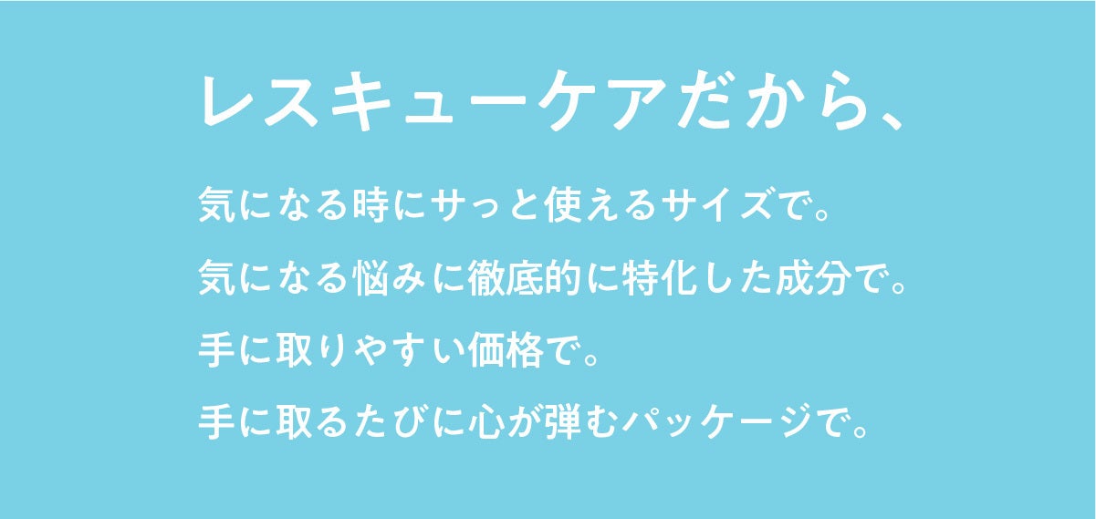 最後にとにかくこだわったのが、毎日変わる悩みへのレスキューケアだから、手に取りやすい価格でご提供することです。
