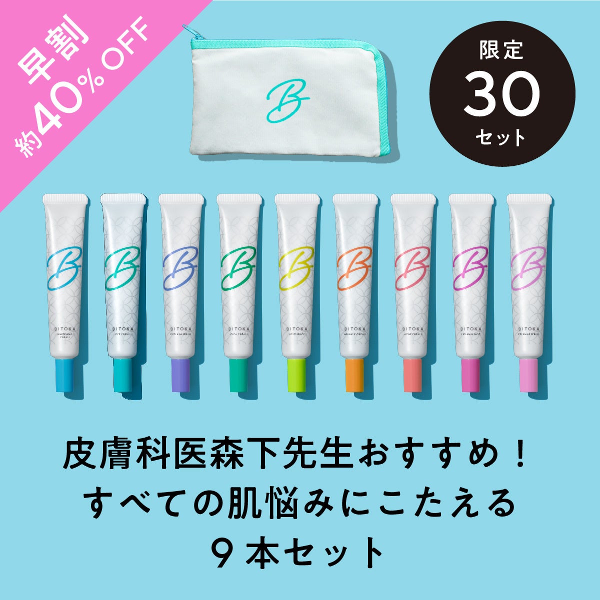 「日々変わる肌悩みに、日々細やかにケアをする」ためにご用意した9種のラインナップが特徴の「BITOKA ポイントケアシリーズ」。