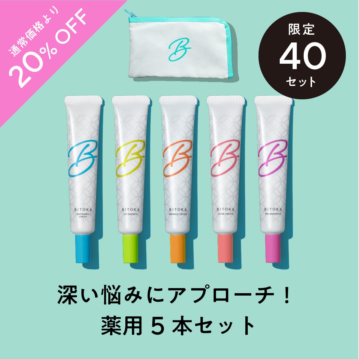 「深い悩みにアプローチ! 薬用5本セット」 ¥8,000 20%OFF(税込・送料込)