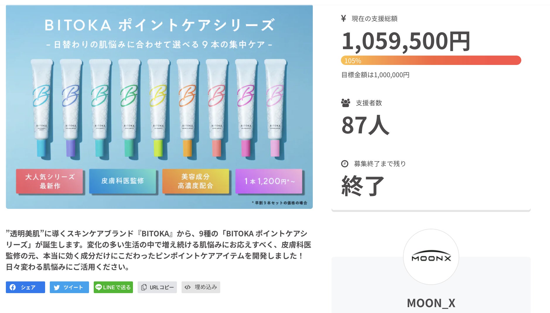 もっと見る【リターン品発送と本発売開始のお知らせ】「BITOKA ポイントケアシリーズ」の一般販売が開始いたしました!
