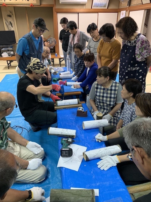 これまでにも、地元住民の方々に対して、竹灯籠制作の指導を行い、制作の輪を広げる活動をしてきました。