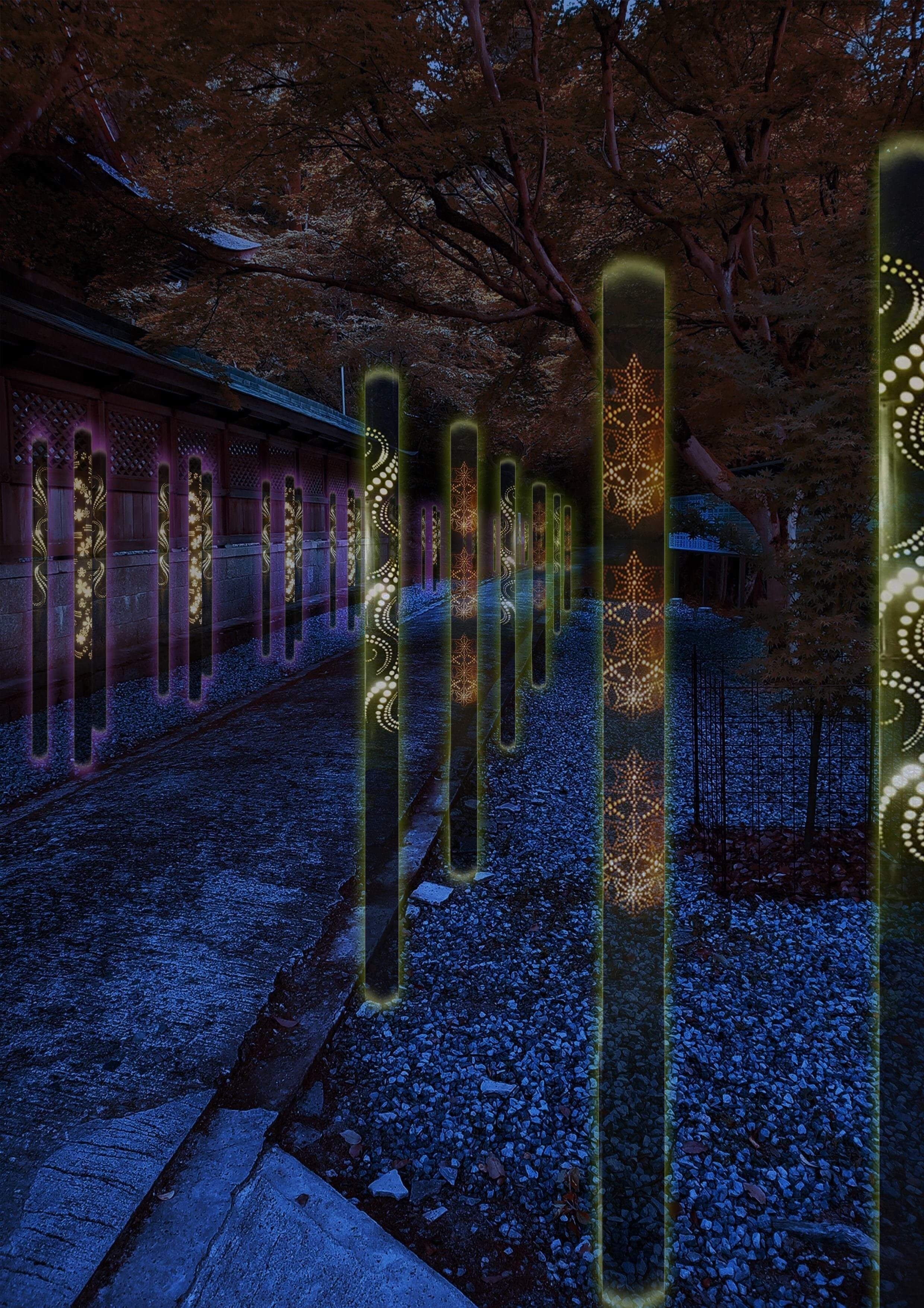 私たちのプロジェクトは、竹害対策として地域で伐採した竹を利用し、紅葉の名所・養父神社をはじめとする市内各所で、季節毎に竹灯籠によるライトアップを行い、地域の夜のイベントの賑わい創出に貢献するのが目標です。(※竹林の伐採は、保安林指定外の場所において所有者の許可を得て行っております)