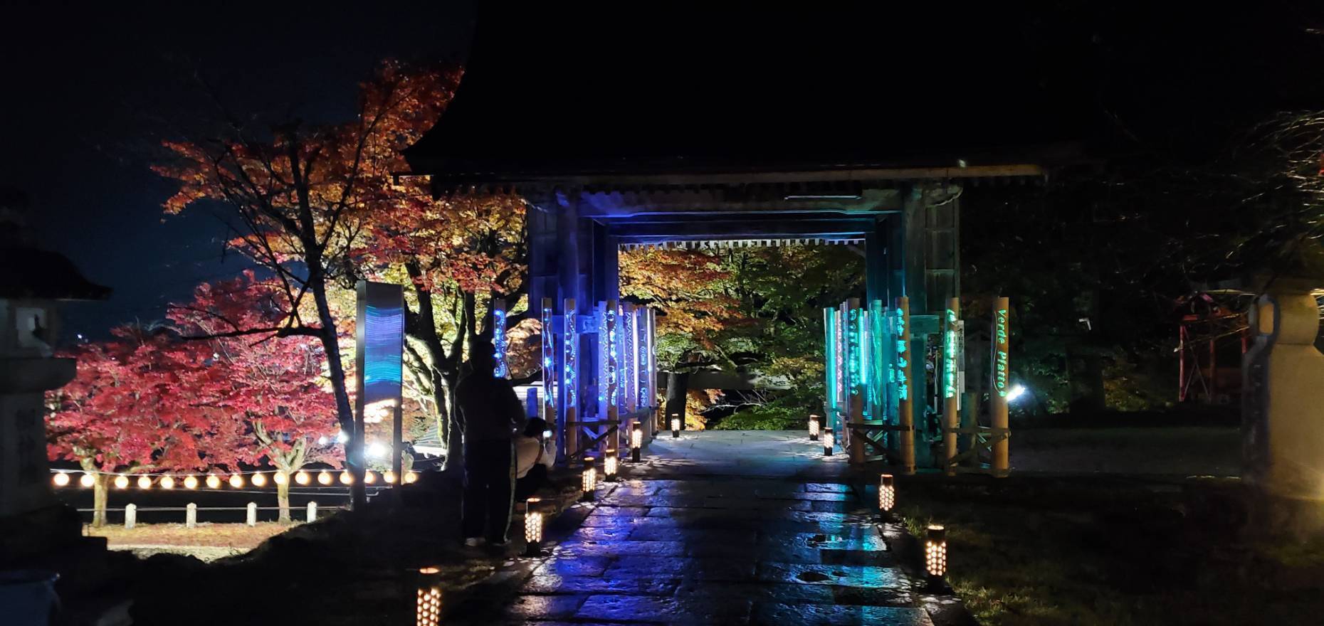 コロナ感染の心配を少しでも減すために、密にならずにより多くの人に紅葉を楽しんでもらおうと、日没後の境内のライトアップに取り組み、昨年からは、竹灯籠を取り入れたライトアップイベントも開催しました。
