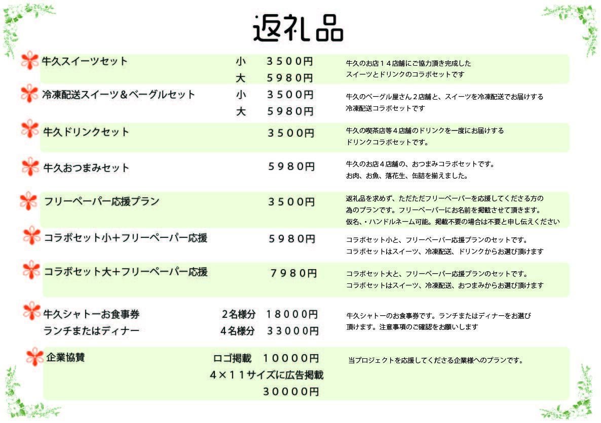 上記に加え、全ての支援者様に、出来上がったフリーペーパーを一冊後日発送致します。