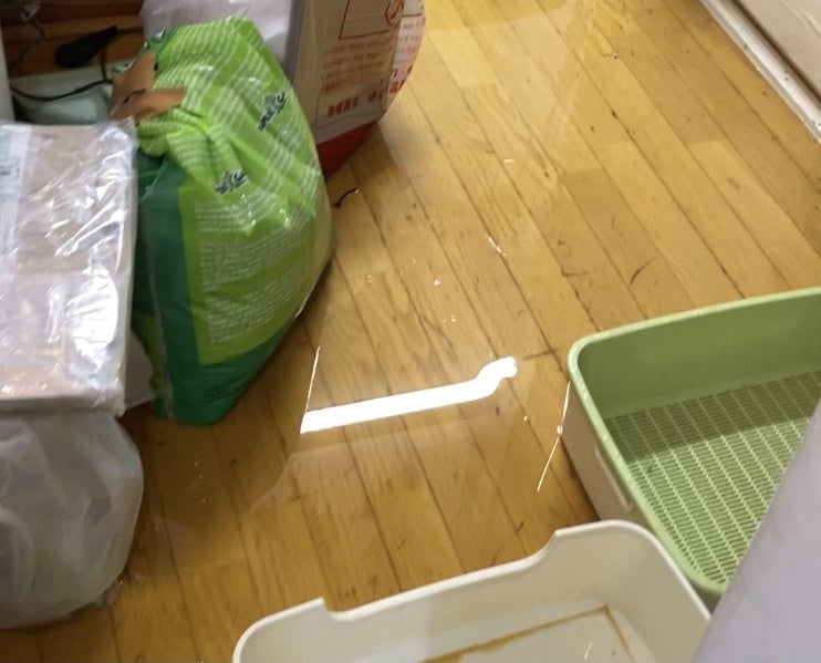 そんな状況に胸を痛めていた13日、私の猫舎にも雨漏りがはじまりました。午前11時頃のことです。