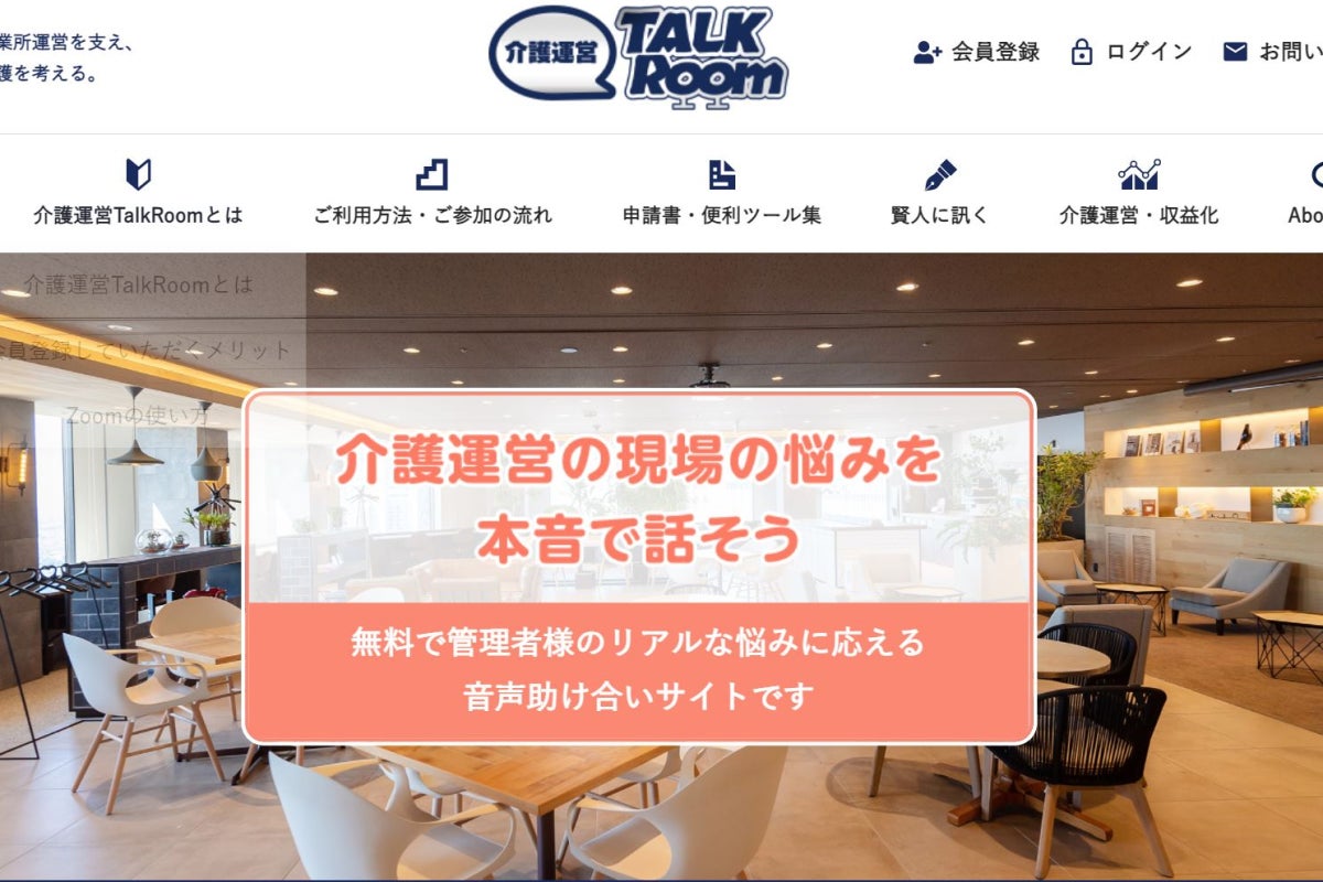 そこで「これらの問題をなんとかしたい!」と、介護運営をサポートするサイト《介護運営TalkRoom》を作りました。