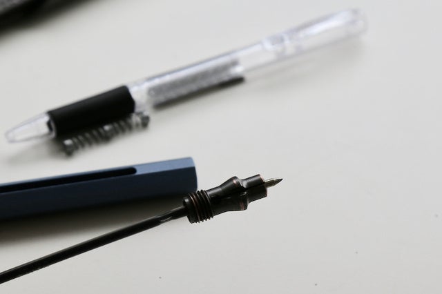 レス・ウエイスト(できるだけゴミを減らす)時代、イベントで配布されたロゴ入りのボールペンや友人の旅土産や、など、書き味は気に入ってるが・・ちゃんとしたシチュエーションでは使いにくいカジュアルなボールペンなど、いつの間にか引き出しに増殖したまだ使えるペンを年に一度の大掃除に破棄することも気が引けます。そんなとき、カジュアルペンから芯を取り出しBall-Pen Cに入れてみる。