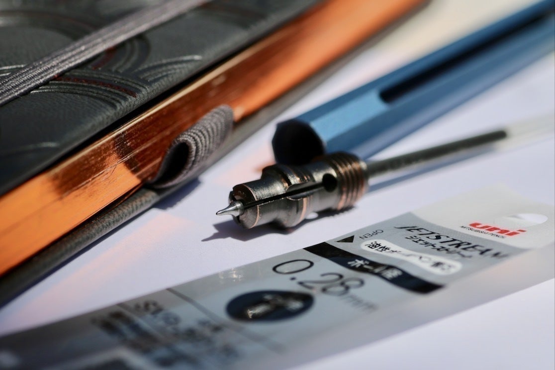 学生から社会人にかけて、メモや雑記、スケジュール帳やノートへの筆記など、IT化が進む今でもボールペンは日常生活に欠かせません。特に「書き味」に対するこだわりがとても強い日本では各メーカーからは、ボールペンの種類は馴染みのある油性インクからはじまり、サラサラと軽い書き味の水性インク。その両方の良さを兼ね備えたゲルインク、さらに進化したエマルジョン、そしてボールペンなのに書き直しができることで人気の消せるインク・・国内では様々なボールペン芯が販売されています。