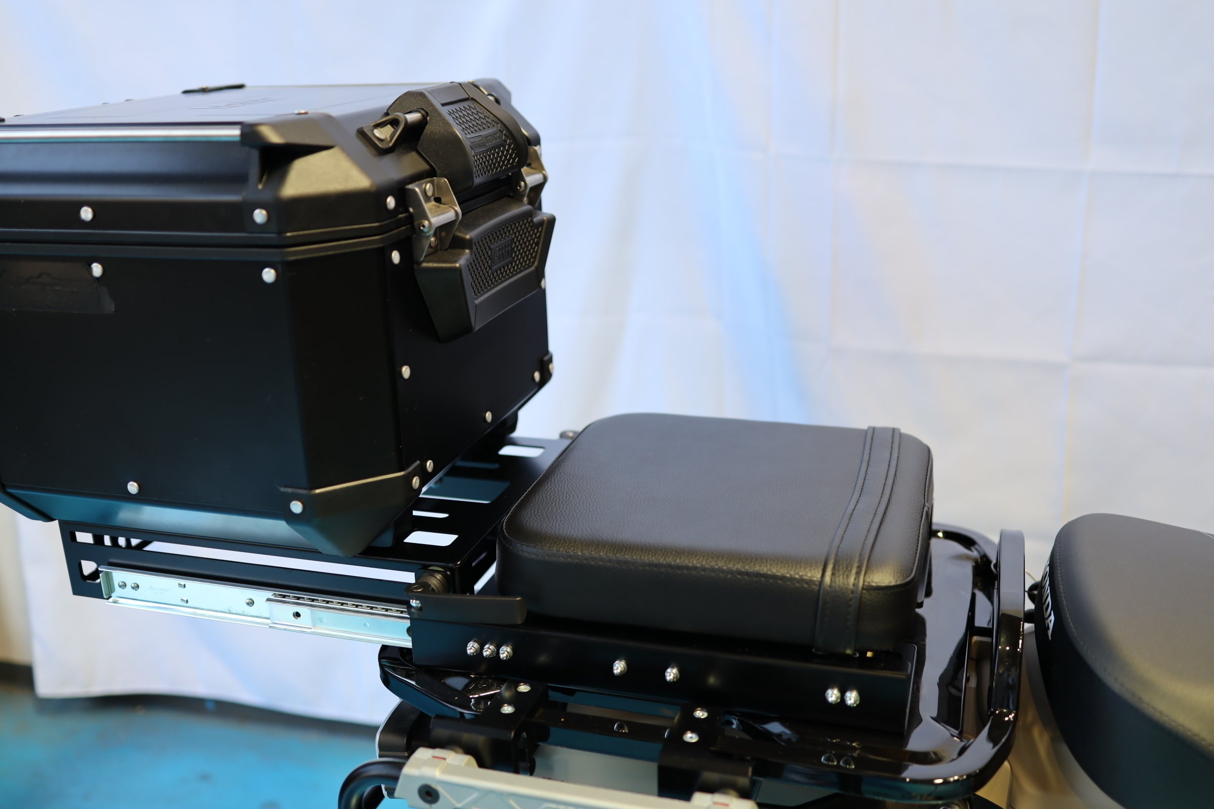 ②タンデムシートを付けたままキャリアがスライドできるようにしました(シート固定タイプ)。