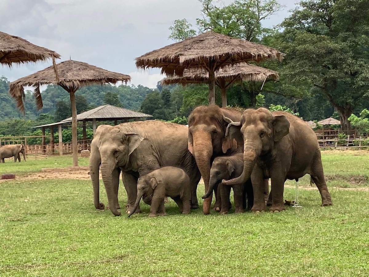 雨の日のエレファント・ネーチャーパークです。象は雨の日が好きです。雨が降ると肌もしっとりしますし、泥浴びも楽にできる。こんな雨の日は子象たちもはしゃぎます。1歳半のワンマイと1歳のピーマイです。まるで人間の子供のようです。親も乳母も子象を見守っています。お腹が空くと母乳を飲んでエネルギー充填。しかし、多くのエレファントキャンプでは1歳をすぎると親と引き離して調教します。その調教は虐待行為です。狭い木の柵に押し込めて暴力で人間への絶対服従を体に染み込ませます。それを終えると今度はショーを覚えさせたりビジネスの道具として扱います。象はお金をうむ生物となります。そこが象の悲劇です。もし、皆さんが象に乗ることや演技をしてのを見ればそれは子供時代に虐待行為を受けたのだと思って下さい。そういう行為をやめさせるためにもそうした場所ではお金を落とさないようにして下さい。