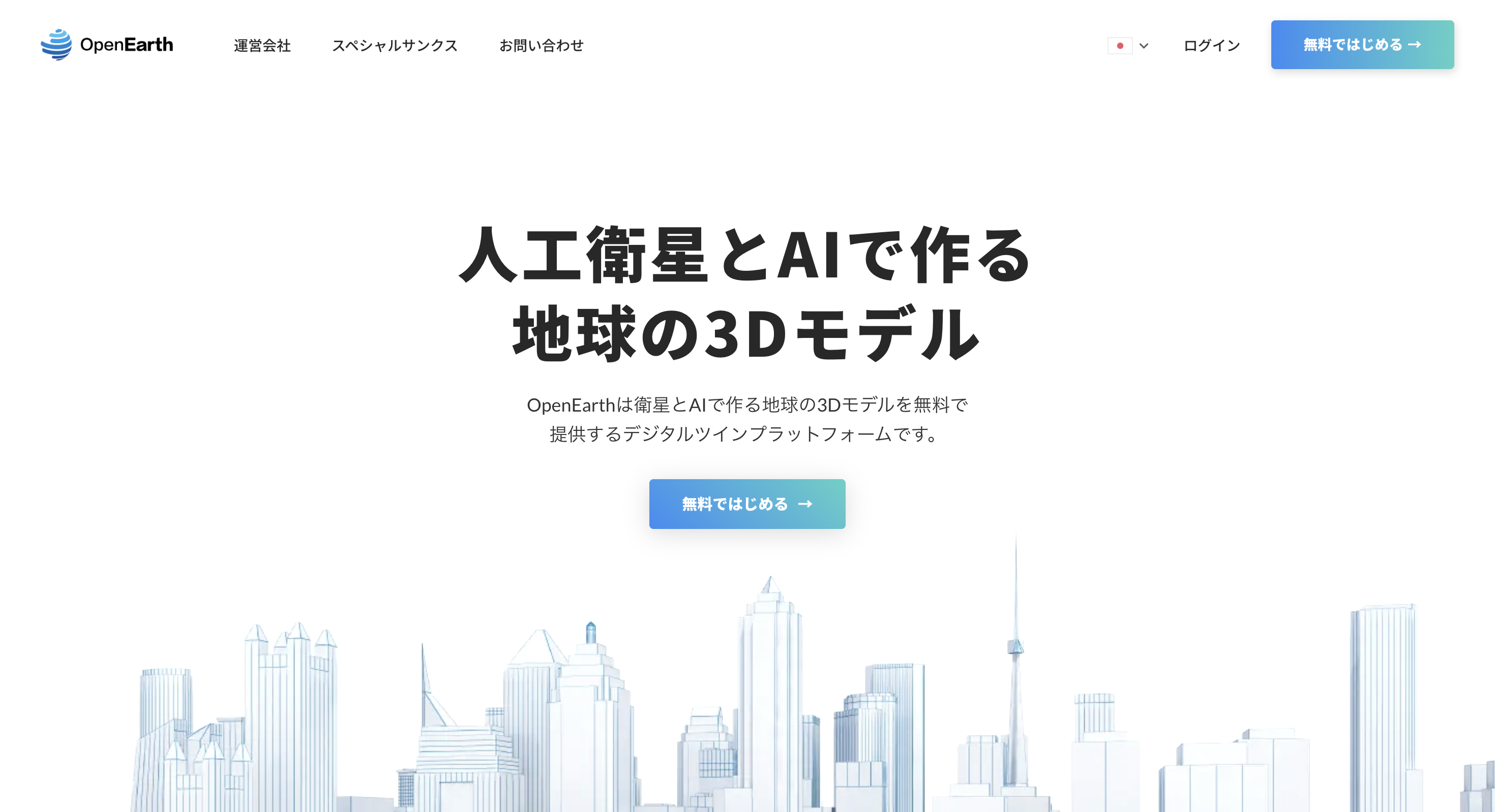 準備中のサービスサイトのトップページ。開かれているという意味の「OPEN」と地球の「EARTH」を掛け合わせた「OpenEarth」というサービスブランドを予定しています。