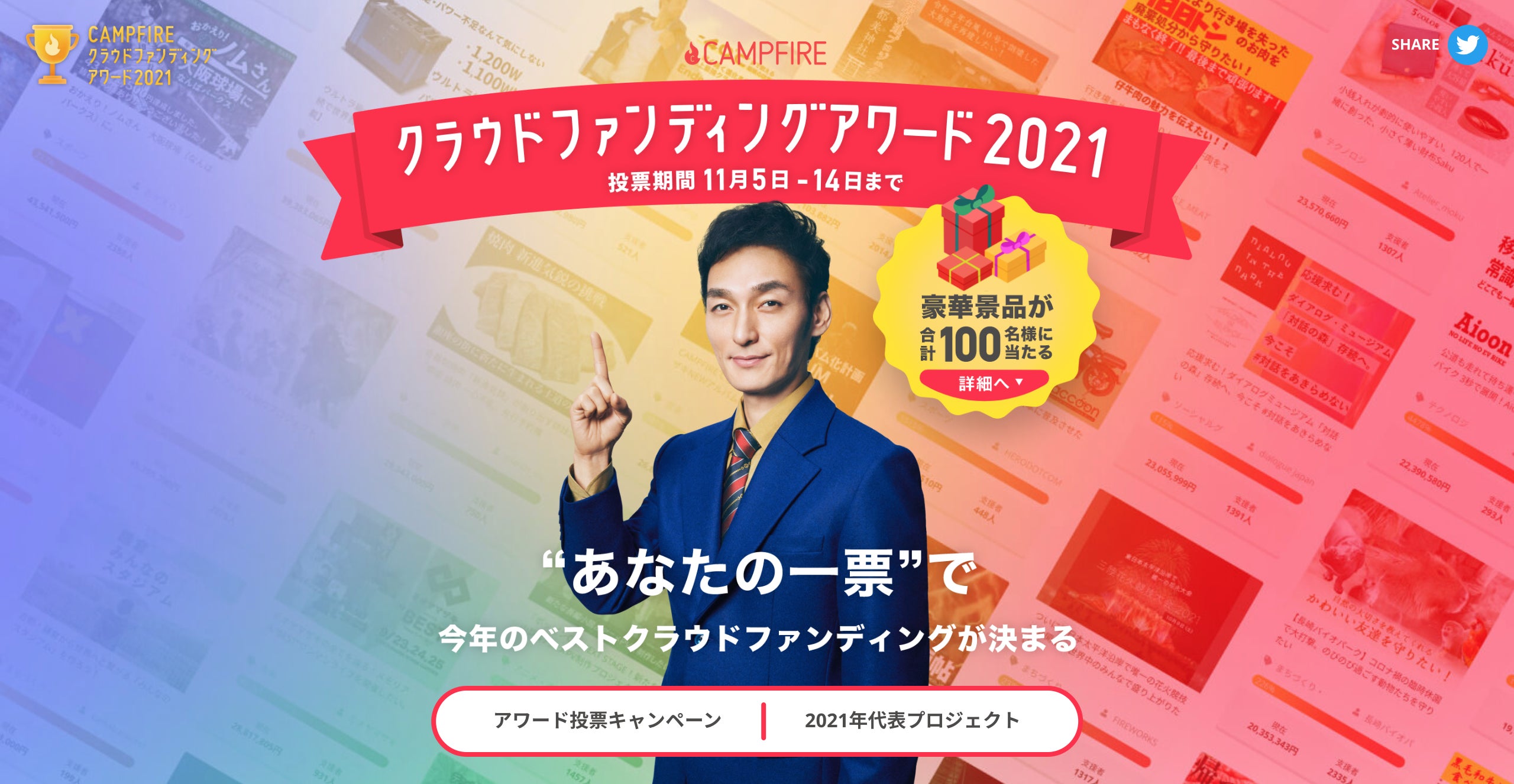 クラウドファンディングアワード2021ではプロジェクト約14,000件から代表100件が選出されます。今回は本プロジェクトが今年を代表するプロジェクト上位100件にノミネートされたことについて、ご支援者の皆様に私から改めて御礼申し上げます。