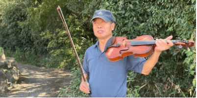 ふっと帰りに違う畑を通るとバイオリンを奏でるダンディが…♡
