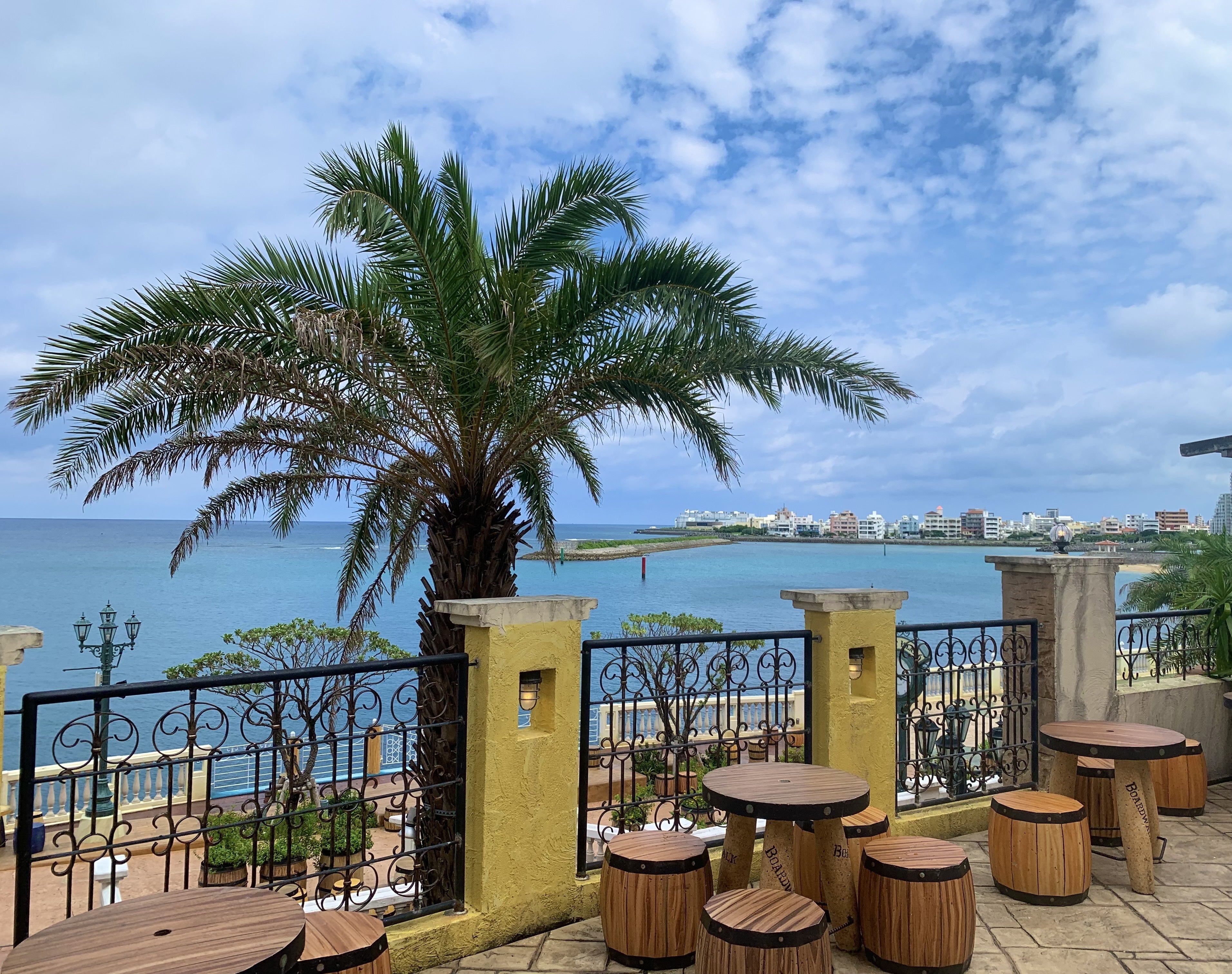このあたりからは海がとても綺麗に見えますし、ヤシの木もたくさん生えていて、非日常感を味わえる最高な場所です!週末の夜にはなんと花火が上がります。