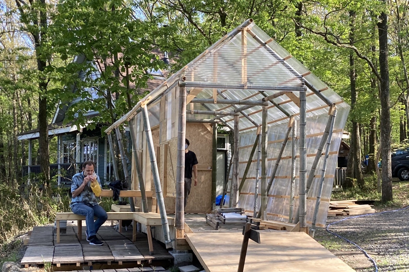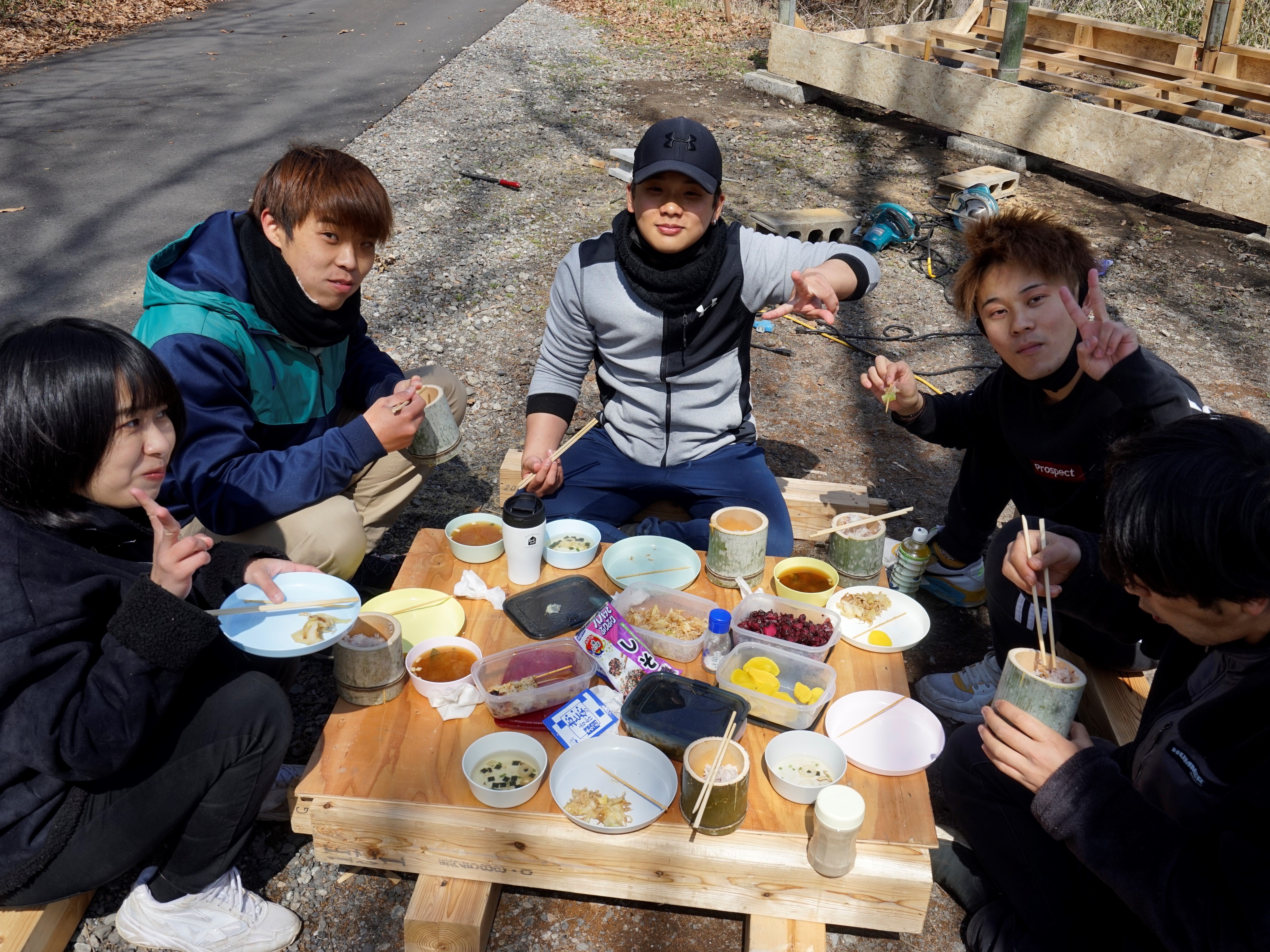材料はメンバーの実家に生えていた竹を切ってきて使ったり、廃材を利用したりしました。