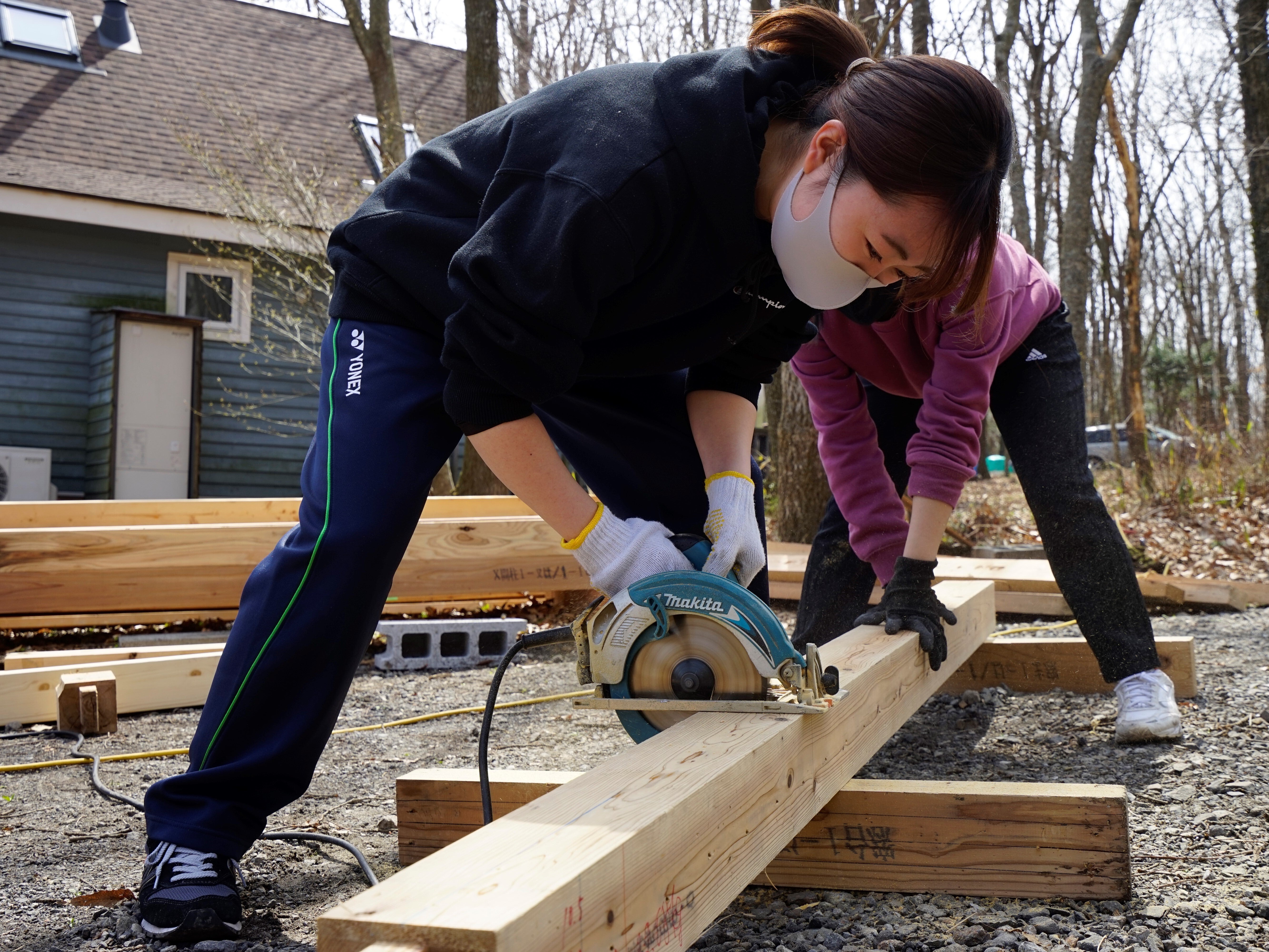 材料費はウッドショックで木材が高騰していたこともあり、約60万円です。屋根や柵などには廃材などを利用して、できるだけ地球にも、大学生にも負担がかからないように施工しております。