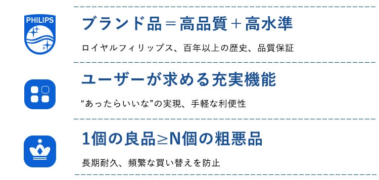 2016年から、フィリップスのグローバル戦略に合わせ、本格的に日本のスマホ周辺機器市場に参入し、日本の代表的な電気店をはじめ、実店舗における展示と販売およびネット販売を急拡大。新しい分野においてもPhilipsの伝統企業文化を貫き、安全・性能・デザインを全般的に考慮した設計や部品の採用基準が最も重要と捉えております。最大限に厳しい基準をクリアした部品のみを使用し、完璧な製品を消費者の方々にお届けするべく邁進します。