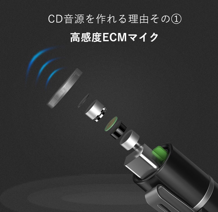 高音質の理由一つ目は6mmの内蔵ECMマイク。