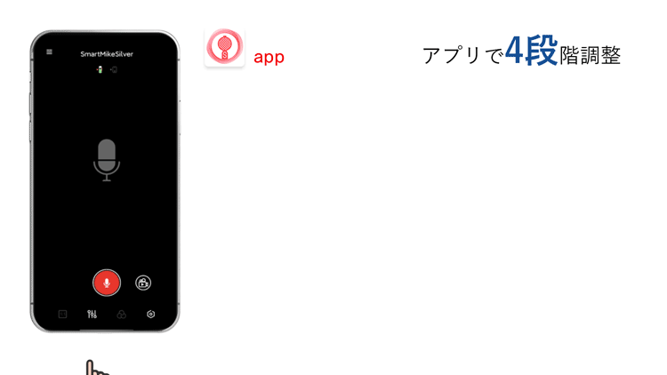 ・使用するアプリ「SmartMike+」は本製品専用アプリではござません。他製品と互換性があるアプリの為、アプリに記載されている機能すべてが使えるわけではございませんので予めご了承ください。