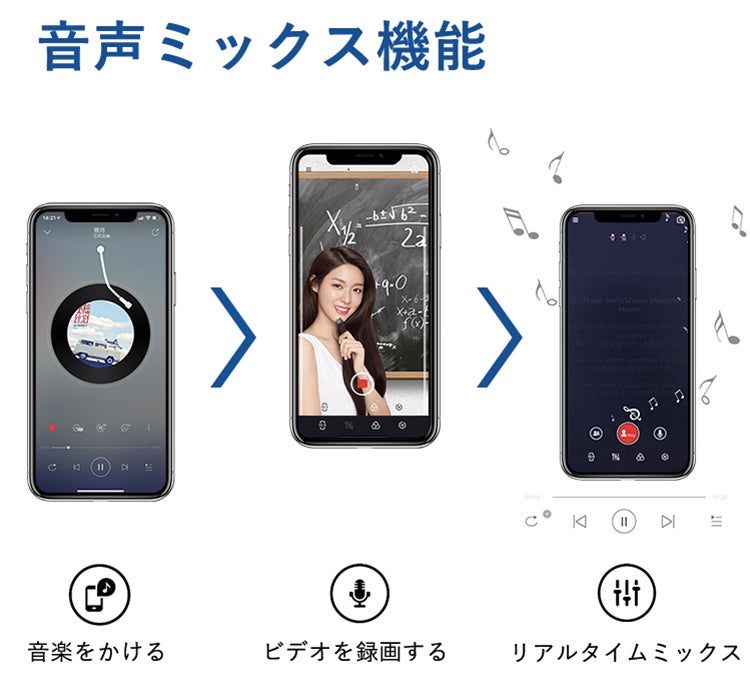「SmartMike+」を使用すればバックで音楽を流しながらの撮影が可能!リアルタイムで流すことができるので、編集する手間を省きます。バックミュージックの音量を調整することもできますよ。