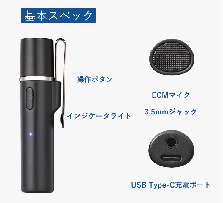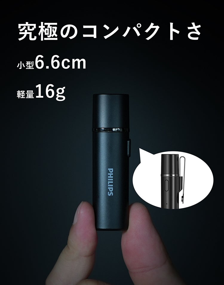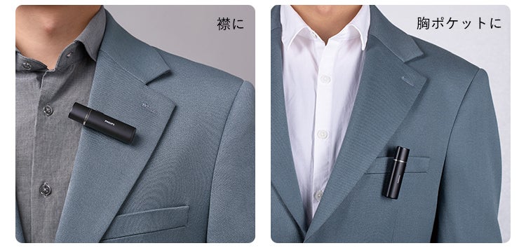 また、長さ約66mmだから胸ポケットにもすっぽり。マイクの姿を見せずに使用することも可能です。