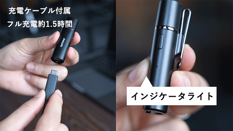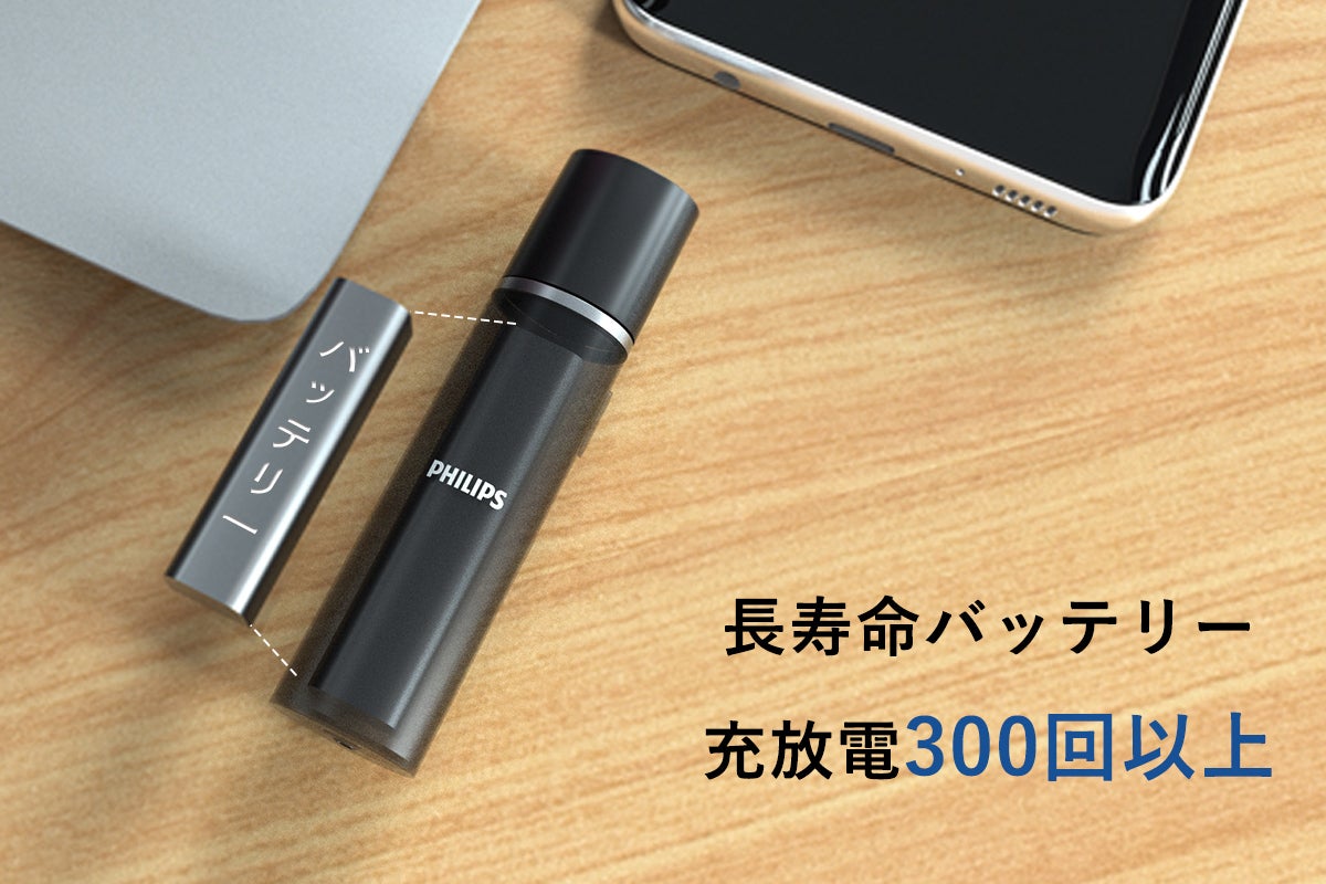コンパクトボディの中には容量150mAhのバッテリーが内蔵されており、充電を繰り返して何度でも使用OK。