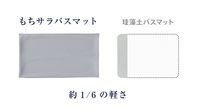 Mサイズ約270g、Lサイズ約400g、LLサイズ約1040gと同サイズの板状珪藻土バスマットと比べ軽量です。