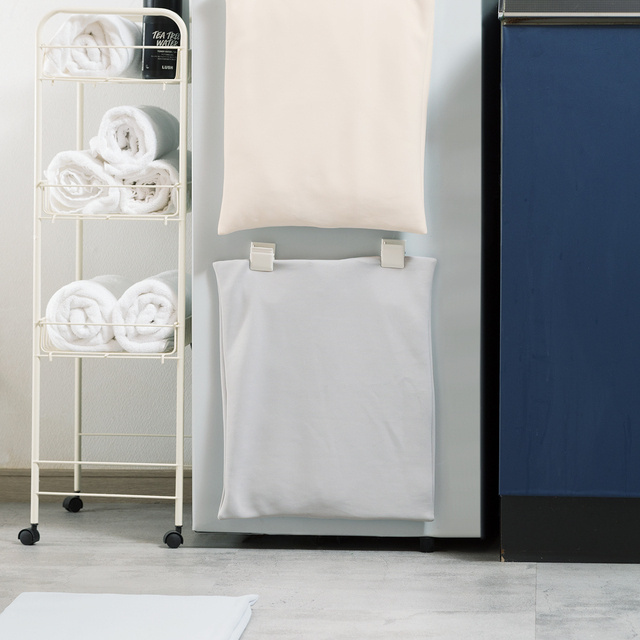 軽いのでマグネットクリップなどで洗濯機につけておいたり、やわらかいため折りたたんでの保管も可能。板状の珪藻土バスマットのように立てかけておく必要もないので、倒れて割れる心配もありません。