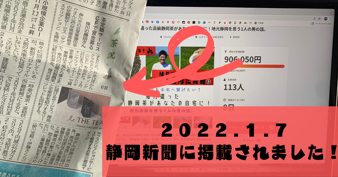 2022年2月16日より、遂にTHE TEAのサービスをリリース致しました。皆様から多くのご支援を頂き、THE TEAの事業を開始することができました。目を通していただいた方、応援メッセージを頂いた方、そして何より貴重なご支援をいただいた方。本当に多くの方の支えのおかげでスタート地点に立つことが出来ました。静岡茶の魅力、そして生産者の熱い想いを、少しでも多くの方にお届けできるよう、今後もより一層精進して参ります。誠にありがとうございました。THE TEAの公式HPとECサイトを公開致しました。ぜひ一度目を通していただけると幸いです。インスタグラムなど各種SNSも随時更新していきますので、フォローして、THE TEAの事業を見守ってくださると幸いです。各種サイトはこちらからhttps://lit.link/theteaTHE TEAインスタグラムはこちらからhttps://www.instagram.com/thetea.shizuoka/今後とも何卒、THE TEAをよろしくお願い致します。THE TEA 代表 藤田幸介